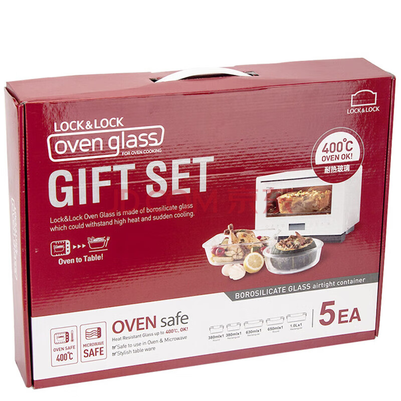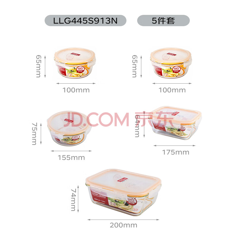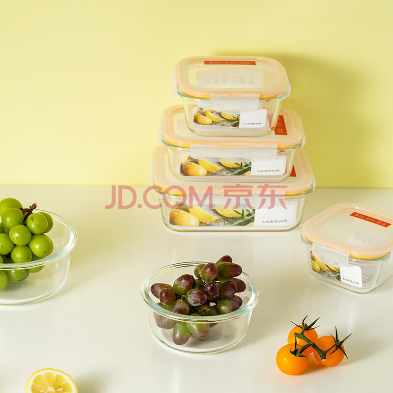 商品相册:乐扣乐扣(LOCK&LOCK)耐热玻璃保鲜盒微波炉饭盒上班学生冷藏分隔餐盒水果保鲜盒五件套第