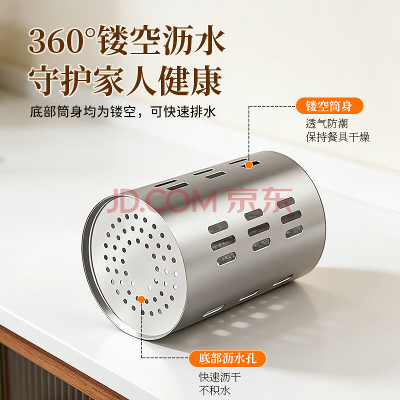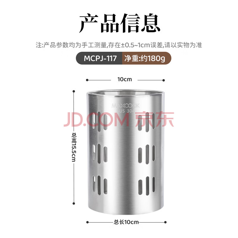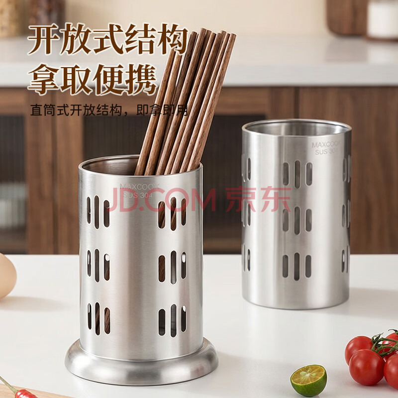商品相册:美厨(maxcook)304不锈钢筷子筒筷笼 加厚沥水置物筷子架 直型系列 MCPJ-117第