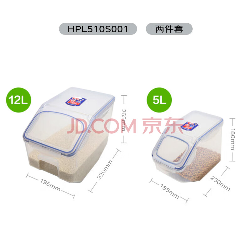 商品相册:乐扣乐扣(LOCK&LOCK)塑料米桶保鲜盒套装储物杂粮干货罐储物箱12L+5L 2件套第
