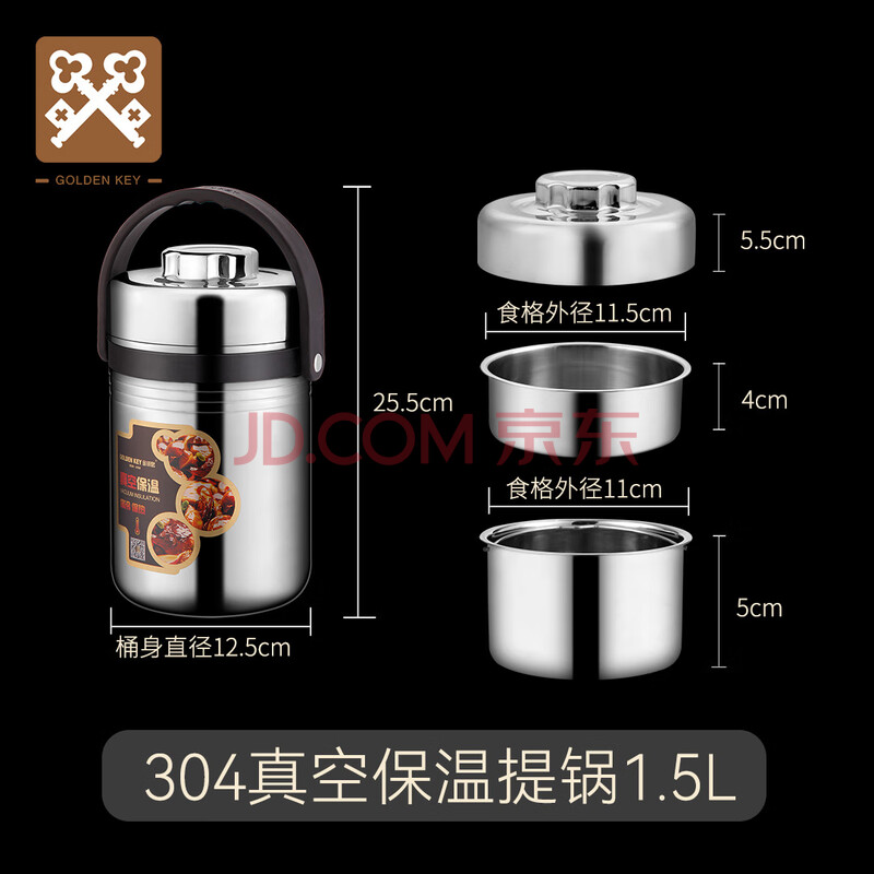 商品相册:金钥匙(GOLDEN KEY)304保温提锅 1.5L直型防溢真空不锈钢饭盒 保温桶 GK-R1500T第