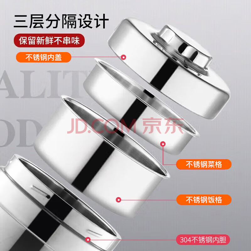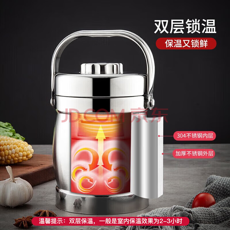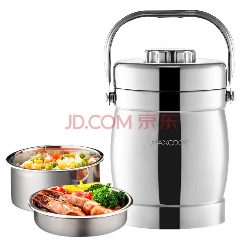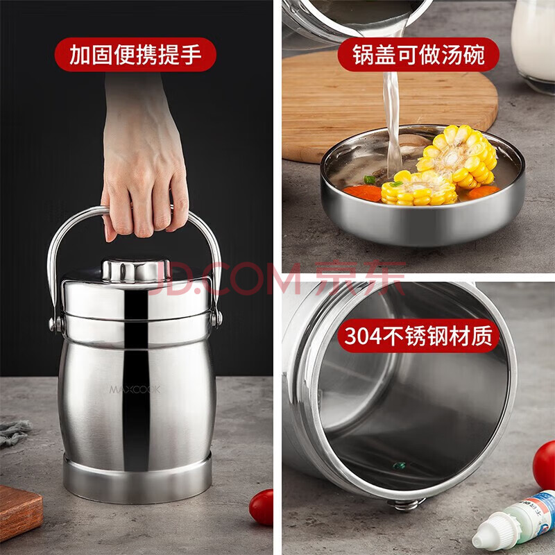 商品相册:美厨(maxcook)304不锈钢保温提锅饭盒 1.5L 双层鼓形便携式保温饭盒 MCST-1.5第