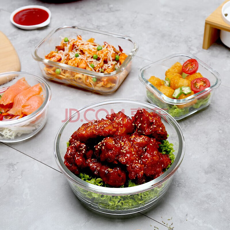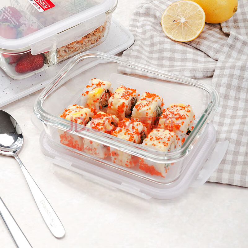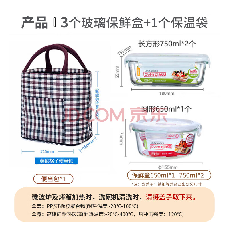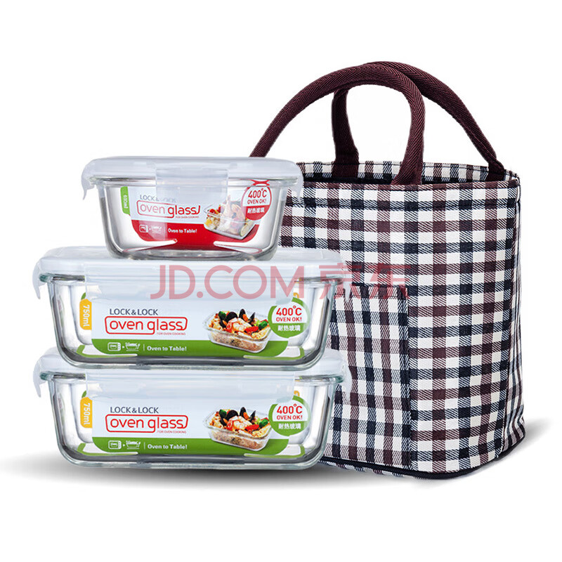 商品相册:乐扣乐扣 耐热玻璃保鲜盒套装微波炉饭盒密封便当盒餐盒750ml*2+650ml+包第