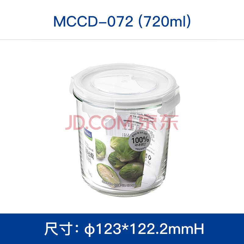 商品相册:Glasslock进口钢化玻璃圆形保鲜盒耐热微波炉饭盒 婴儿奶粉罐MCCD072/720ml第