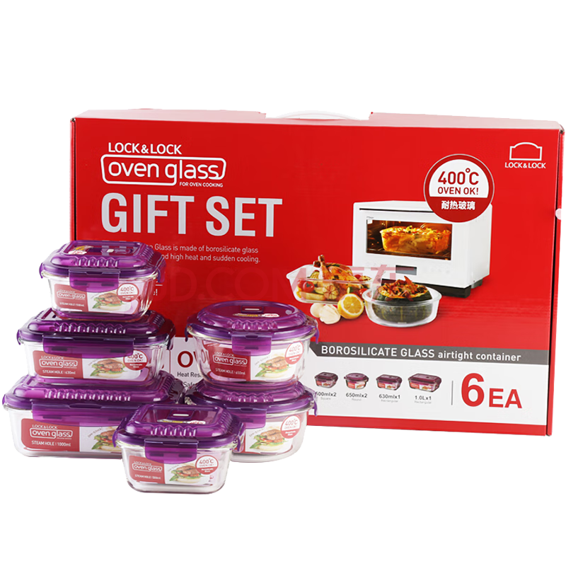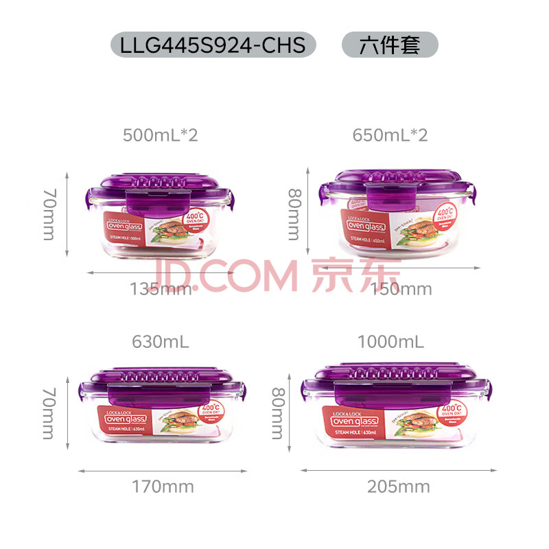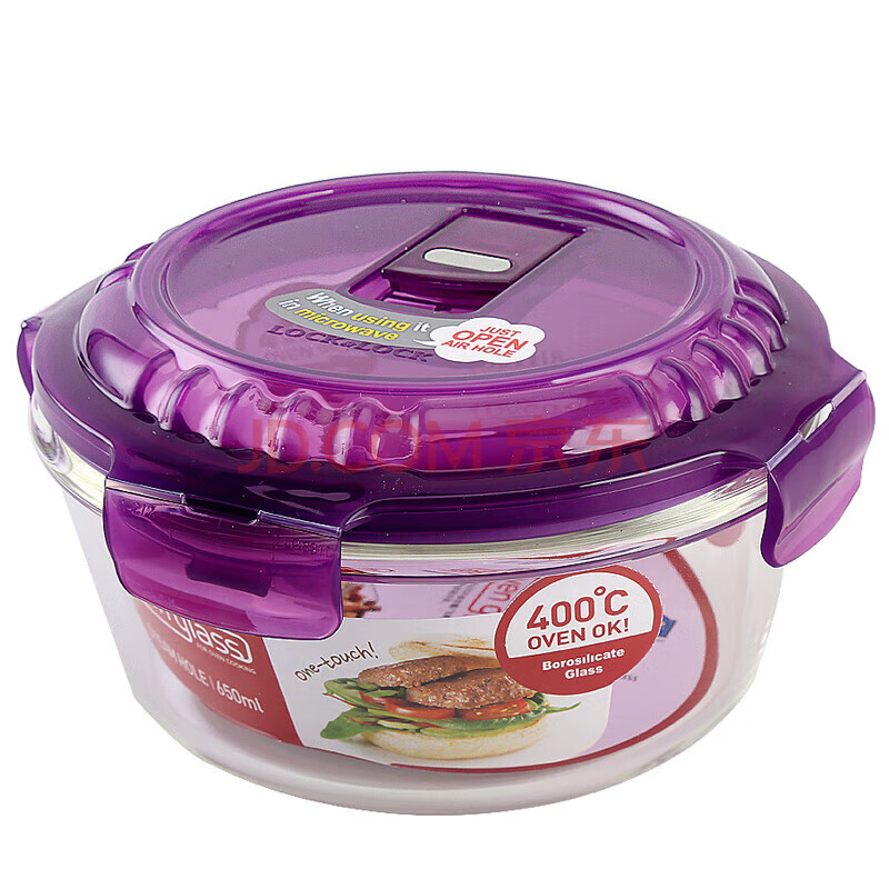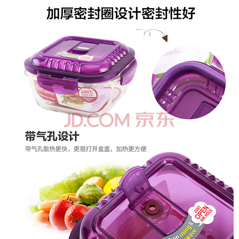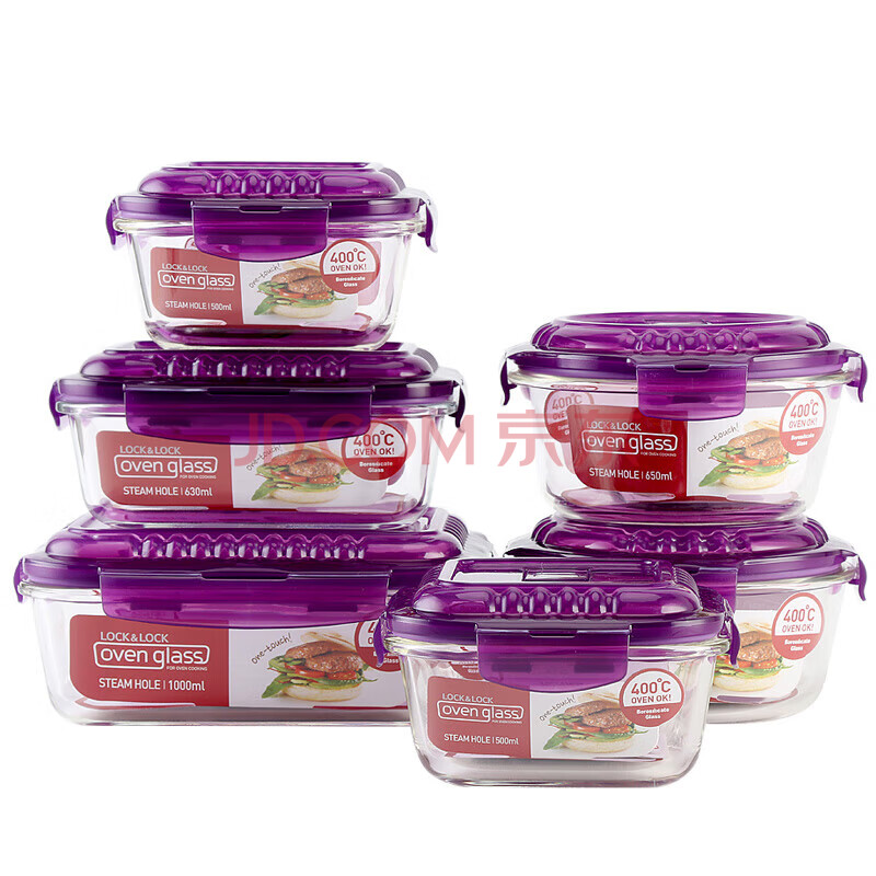商品相册:乐扣乐扣(LOCK&LOCK)耐热玻璃保鲜盒微波炉饭盒上班族学生便当盒带气孔餐盒紫色六件套第1张/共8