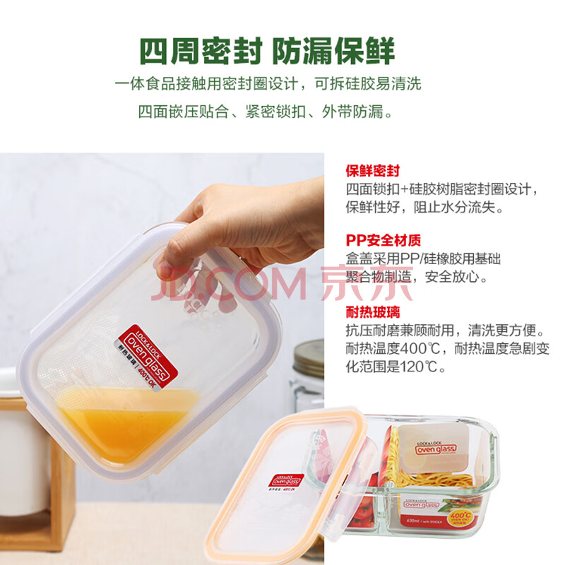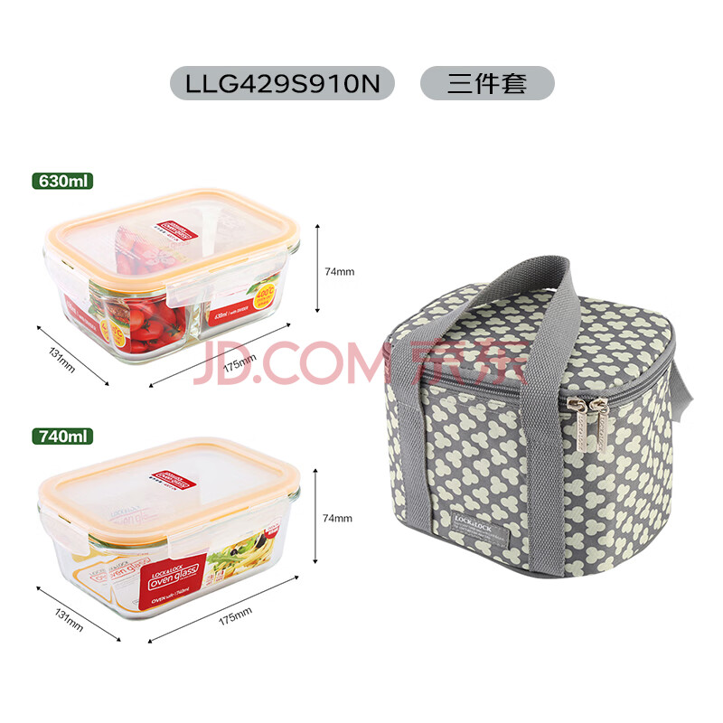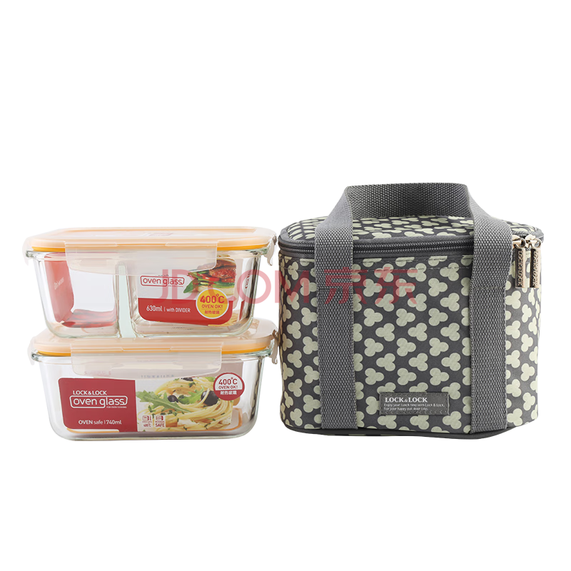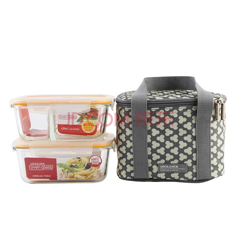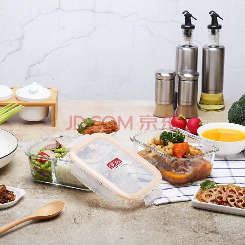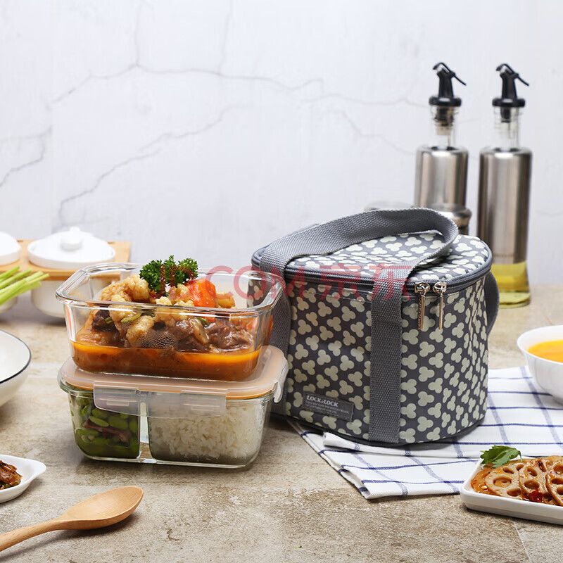 商品相册:乐扣乐扣(LOCK&LOCK)耐热玻璃保鲜盒微波炉饭盒上班学生便当盒分隔餐盒配便当包两件套第