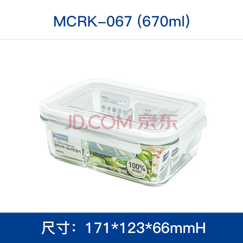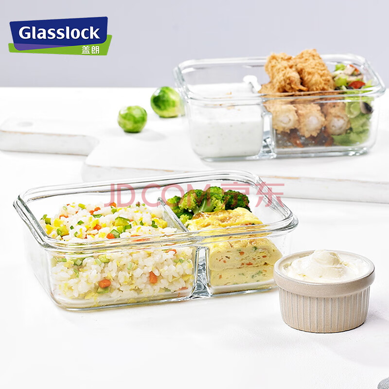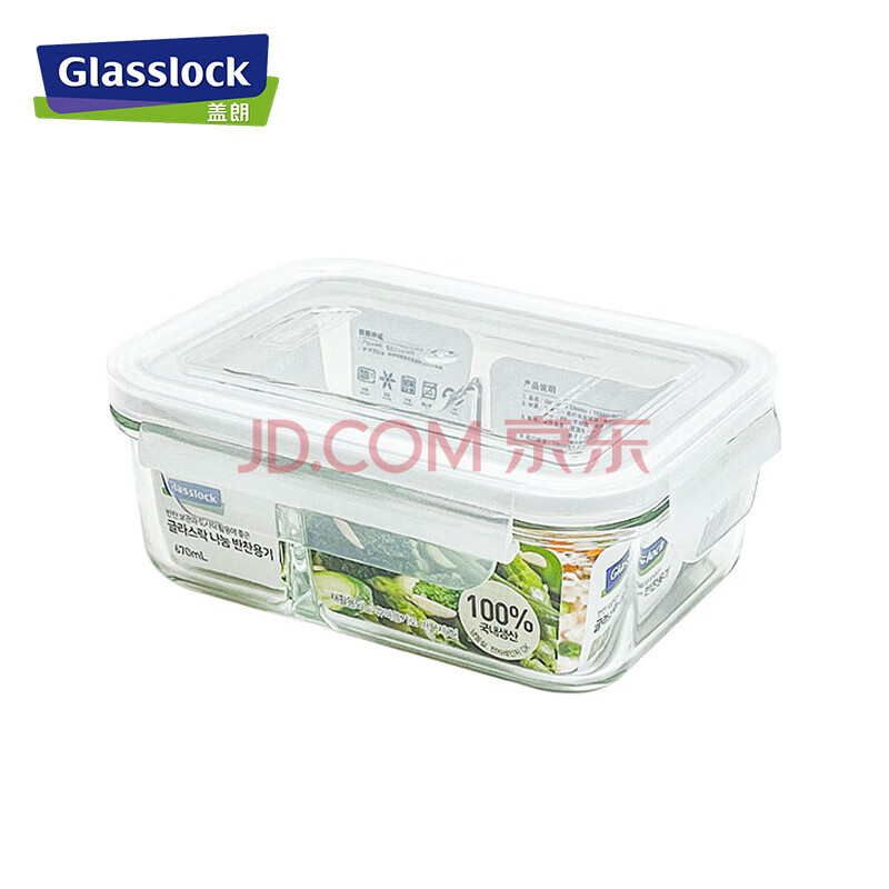 商品相册:Glasslock进口钢化玻璃保鲜盒上班带饭微波炉加热分隔食品级饭盒670ml第