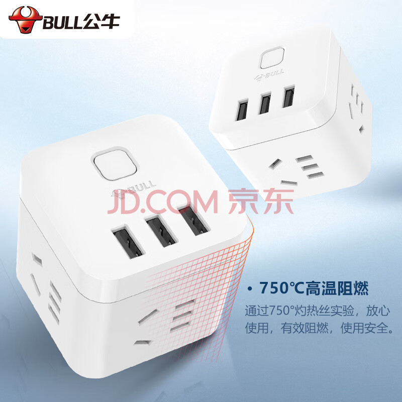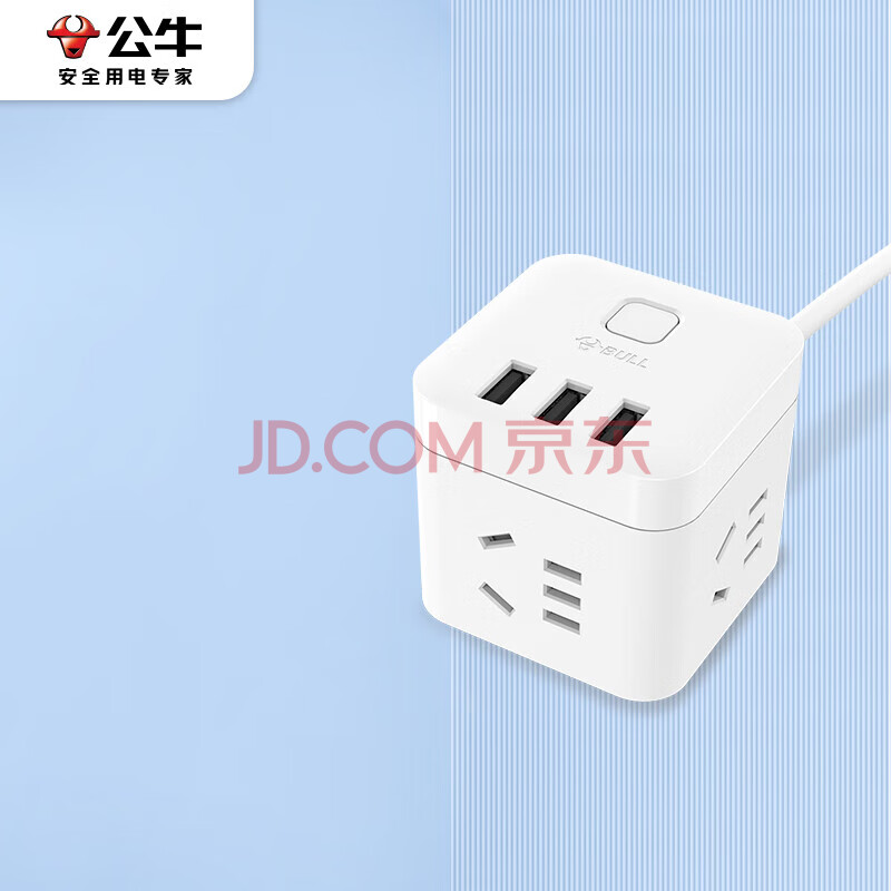 商品相册:公牛(BULL)魔方智能USB插座 插线板/插排/排插/接线板/宿舍家用拖线板 GN-U303U 白色魔方总控开关USB插座第