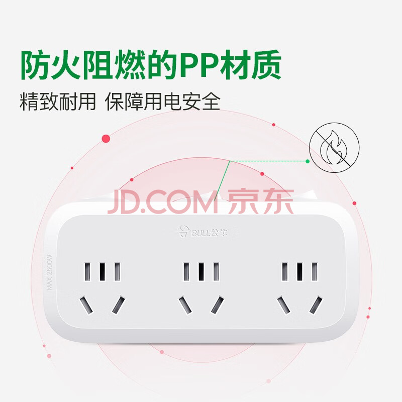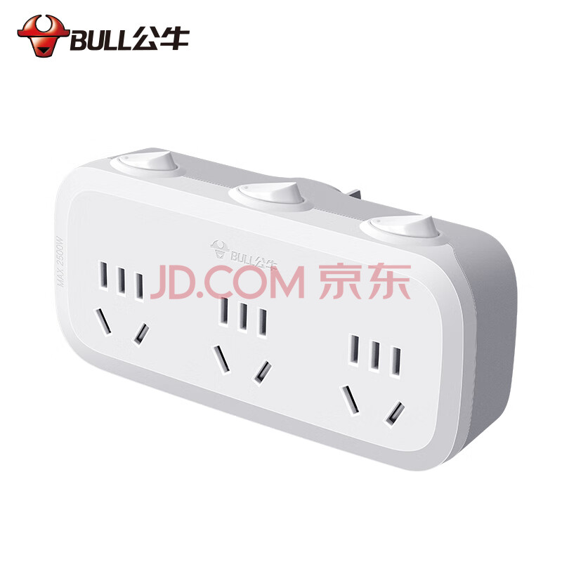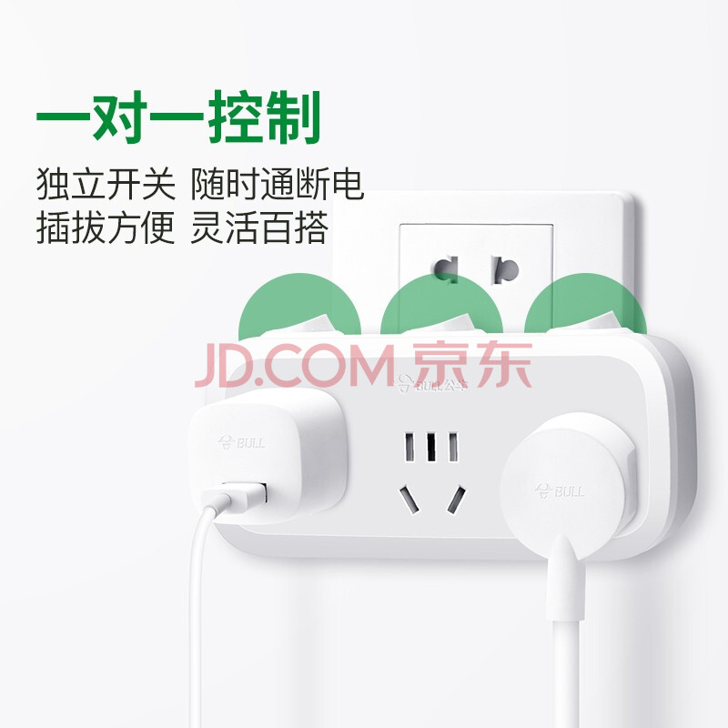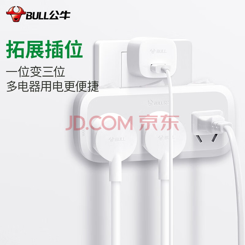 商品相册:公牛(BULL)插座扩展器一转三/一转多插座/转换插头/转换器/插排 适用卧室、厨房 3位分控开关插座GN-9333第