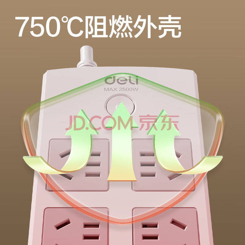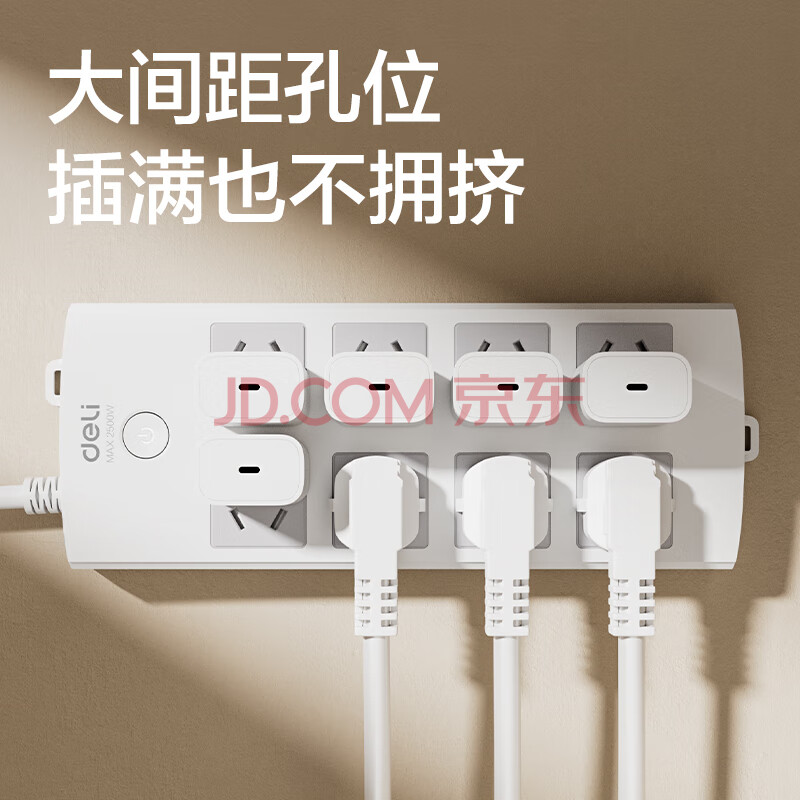 商品相册:得力(deli)3C认证国标安全插座 插排/插线板/接线板/排插/拖线板 总控开关 儿童保护门 8组合孔5米 18212第