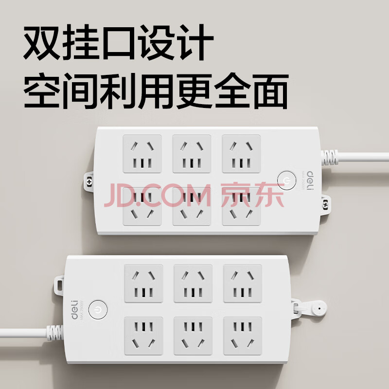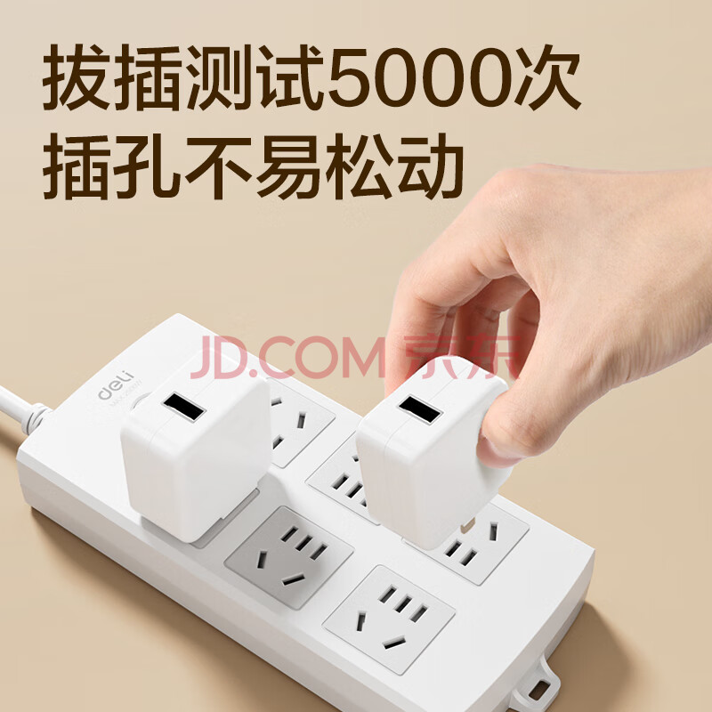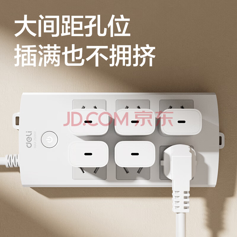 商品相册:得力(deli)3C认证国标安全插座 插排/插线板/接线板/排插/拖线板 总控开关 儿童保护门 6组合孔10米 18207第