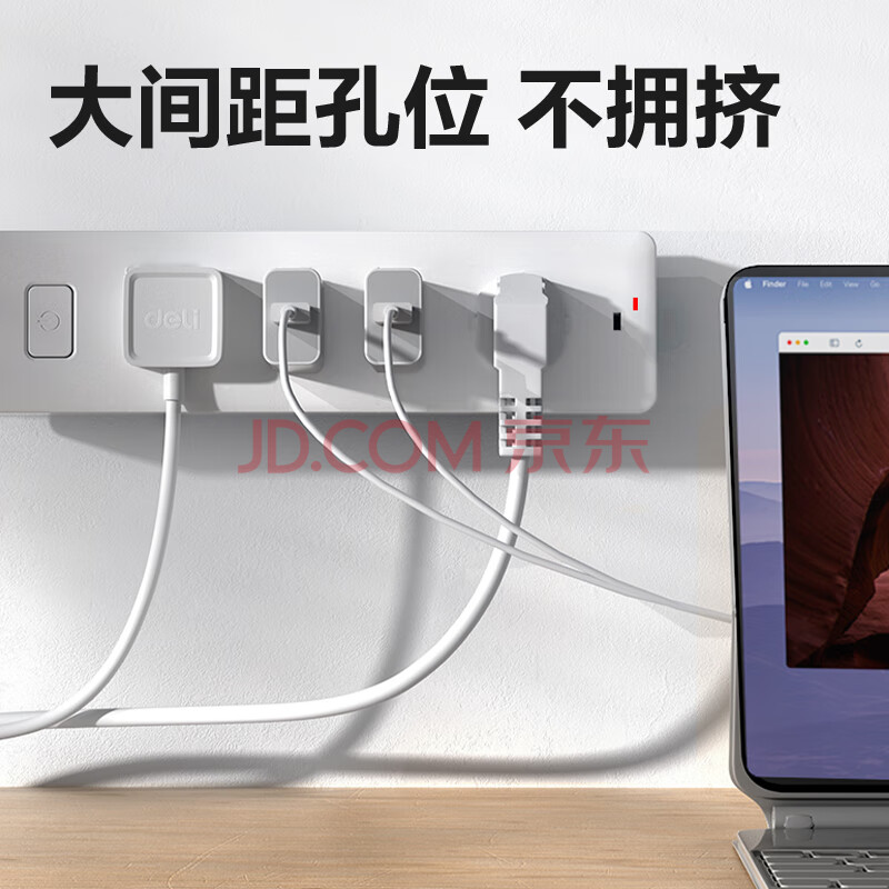 商品相册:得力(deli)3C认证国标安全插座 插排/插线板/接线板/排插/插板/拖线板 4位总控开关 全长2米 18251第