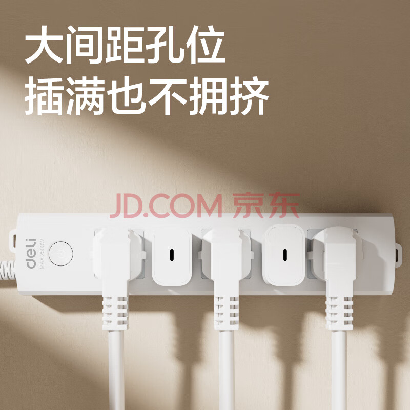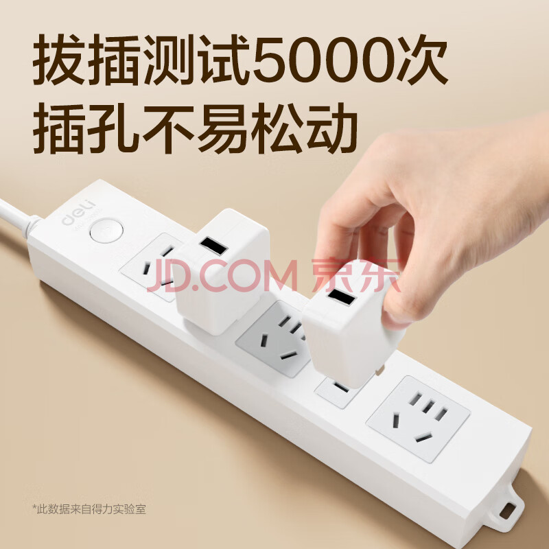 商品相册:得力(deli)3C认证国标安全插座 插排/插线板/接线板/排插/拖线板 总控开关 儿童保护门 5位2米 18202第