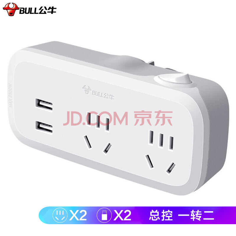 商品相册:公牛(BULL)插座扩展器一转二带usb插座/一转多插座/转换插头/转换器/插排 总控一转二带usb GN-934Q第
