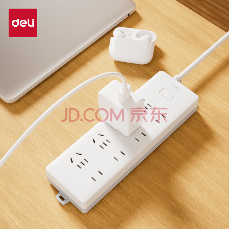 商品相册:得力(deli)3C认证国标安全插座/插排/插线板/接线板/排插/拖线板 总控开关 儿童保护门 8位5米 18259第