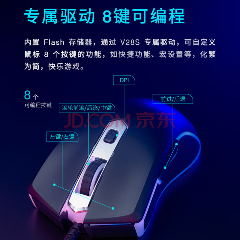 商品相册:雷柏(Rapoo) V28S 鼠标 有线鼠标 游戏鼠标 8键可编程 RGB鼠标 电竞鼠标 吃鸡鼠标 鼠标宏定义 黑色第