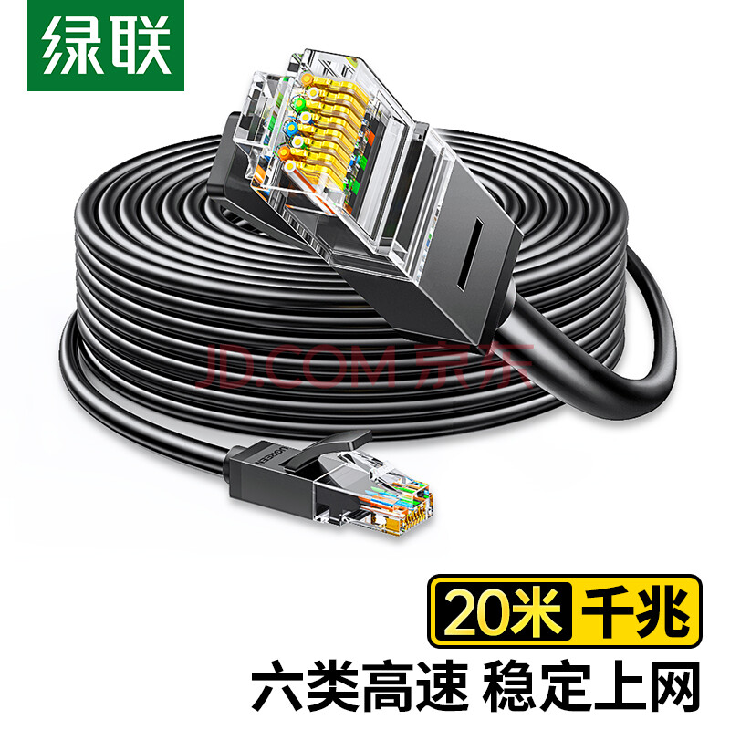 商品相册:绿联六类网线 20米千兆高速网络宽带线 6类家用电脑笔记本路由器监控线 CAT6成品跳线带双接头黑20166第