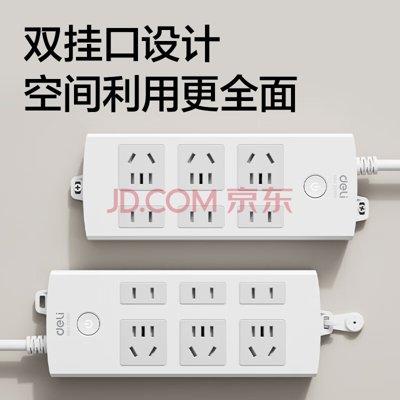 商品相册:得力(deli)3C认证国标安全插座 插排/插线板/接线板/排插/拖线板 总控开关 儿童保护门 6位2米 18208第