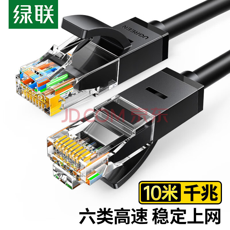 商品相册:绿联六类网线 10米千兆高速网络宽带线 6类家用电脑笔记本路由器监控线 CAT6成品跳线双接头黑20164第