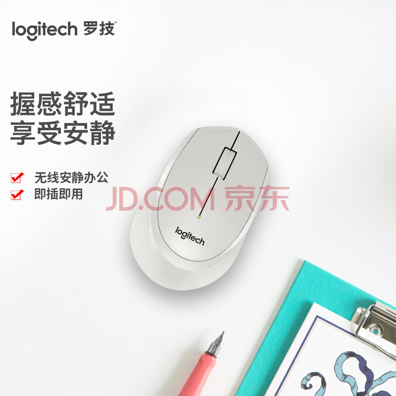 商品相册:罗技(Logitech)M330 静音鼠标 无线鼠标 办公鼠标 右手鼠标 带无线微型接收器 白色第