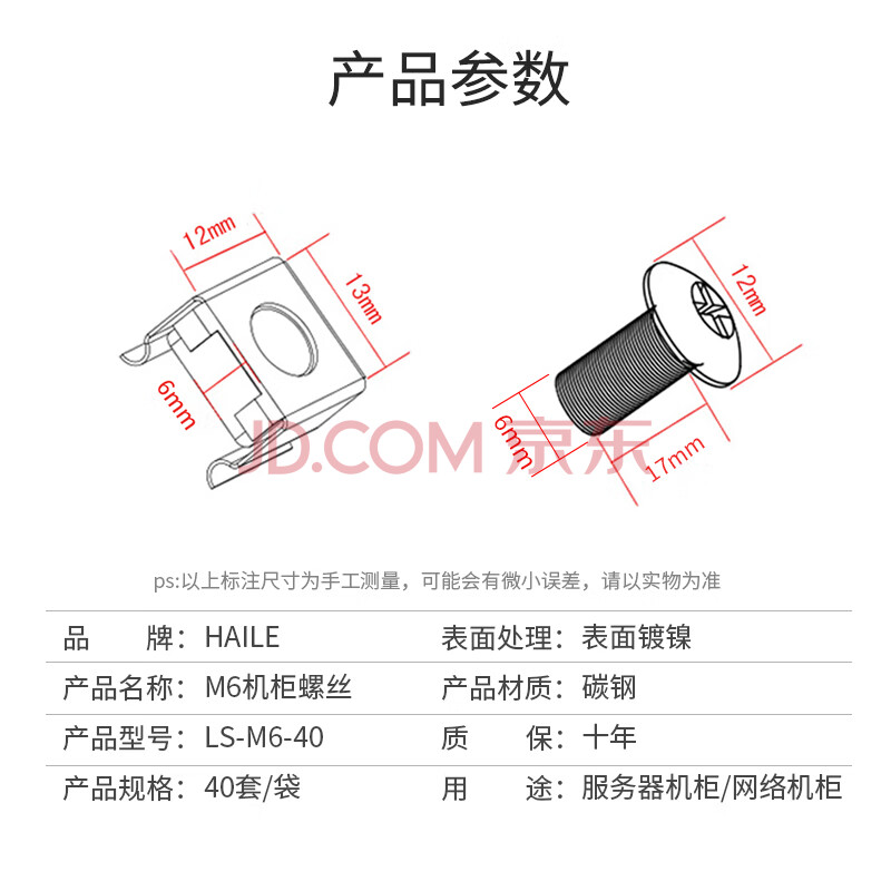 商品相册:HAILE机柜螺丝M6 高品质机柜专用十字一字螺丝 40套/袋 LS-M6-40第