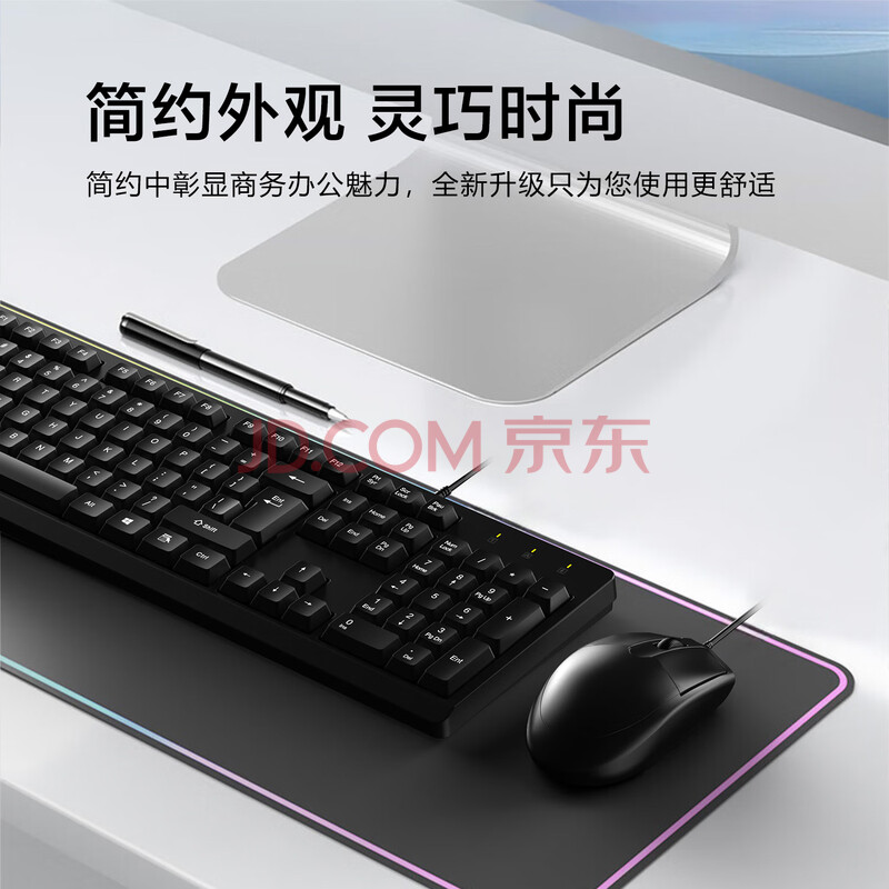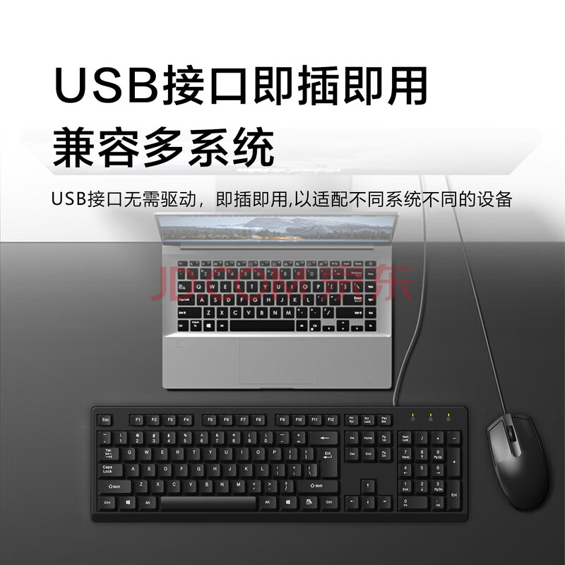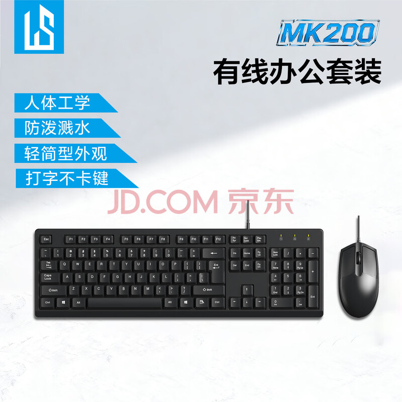 商品相册:灵蛇(LINGSHE)有线USB键鼠套装 全尺寸键盘 商务办公 防泼溅 经典手感鼠标键盘套装 MK200黑色第