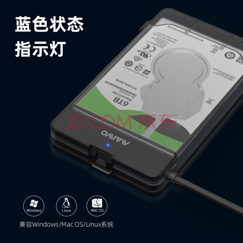 商品相册:麦沃(MAIWO)2.5英寸移动机械硬盘盒 USB3.0笔记本硬盘外置盒 SSD固态机械SATA串口硬盘盒子 黑色 K104第1张/共7