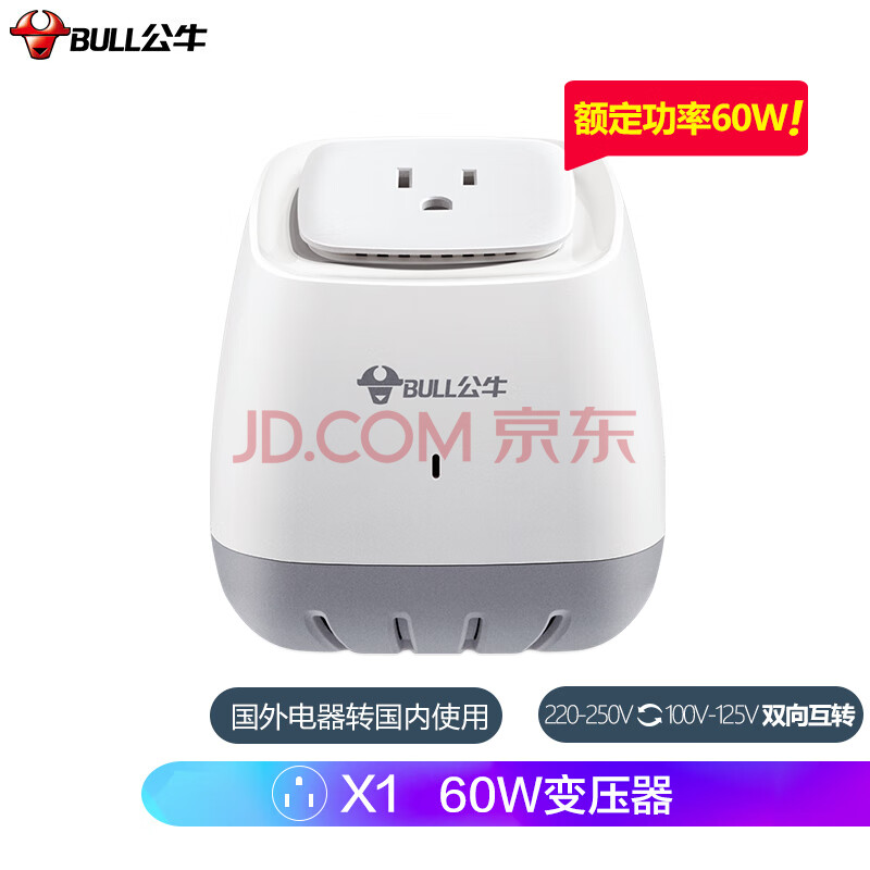 商品相册:公牛美标电器变压器插座国内使用220V/110V互转额定功率60W内适用 GN-P1W 1.8米 适用美国日本等电器第