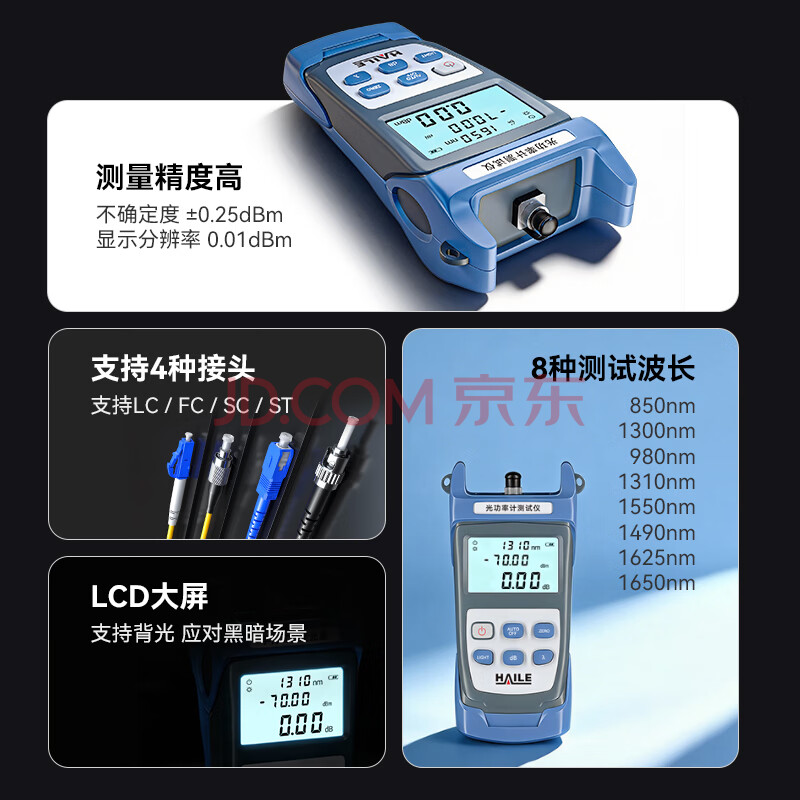 商品相册:HAILE海乐 光功率计高精度光纤光衰测试仪 测量范围-50~+26(含电池、手提包)1台 HJ-8502第