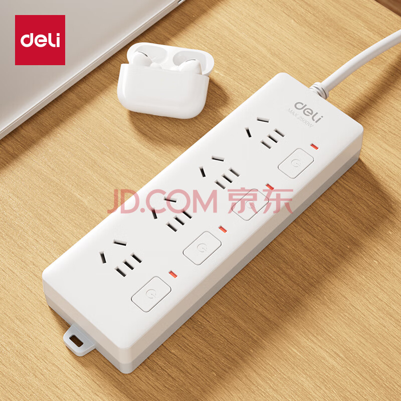 商品相册:得力(deli)分控插座 插排/插线板/接线板/排插/拖线板 3C认证国标 4位独立开关 全长3米 3989第