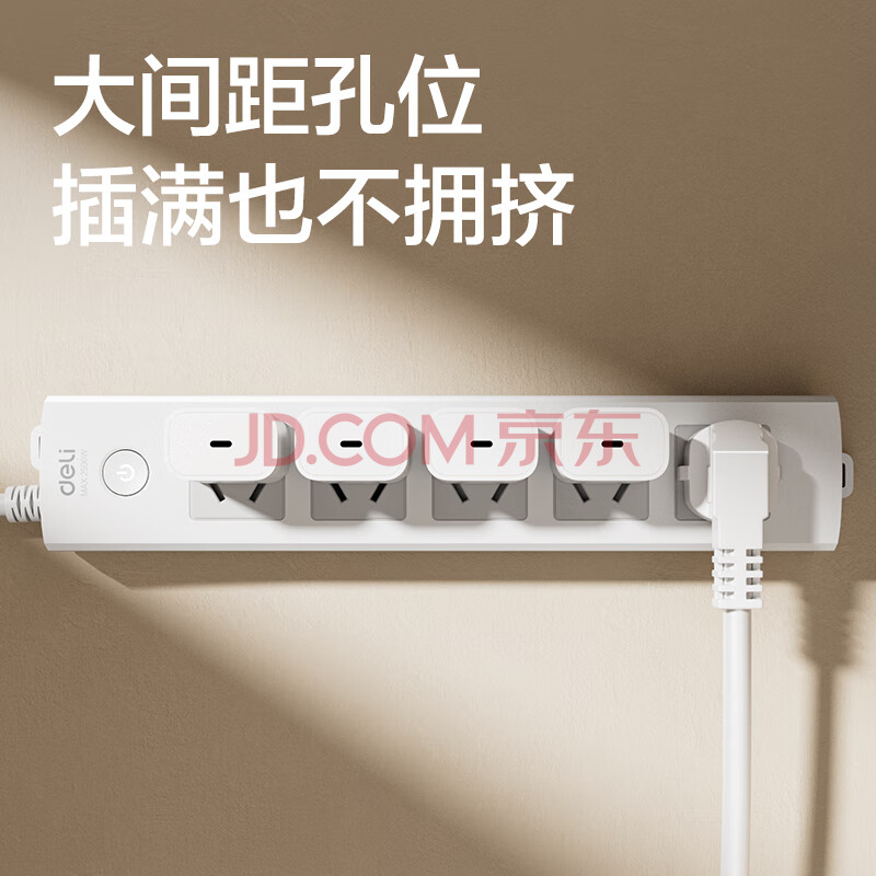商品相册:得力(deli)3C认证国标安全插座 插排/插线板/接线板/排插/拖线板 总控开关 儿童保护门 5组合孔3米 18204第