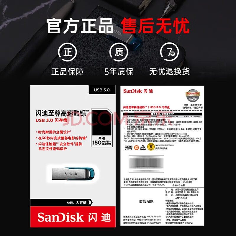 商品相册:闪迪(SanDisk)64GB U盘 CZ73 时尚蓝色 安全加密 数据恢复 学习电脑办公投标 小巧便携 车载 金属优盘第