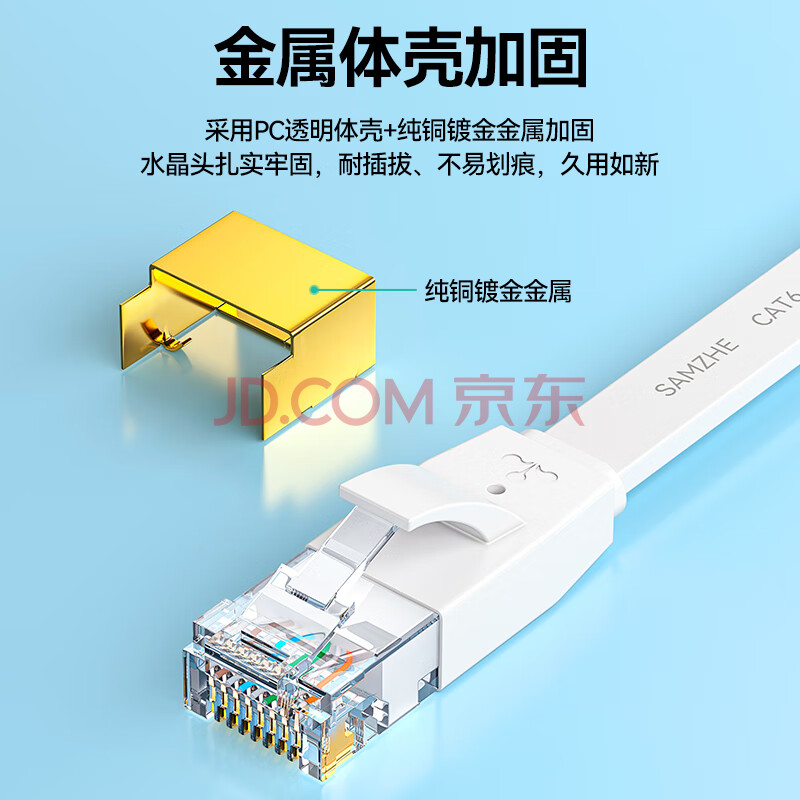 商品相册:山泽六类CAT6类网线 千兆网络连接线 电脑宽带家用双绞非屏蔽扁平跳线 纯铜成品网线 白色1米 6010PBS第