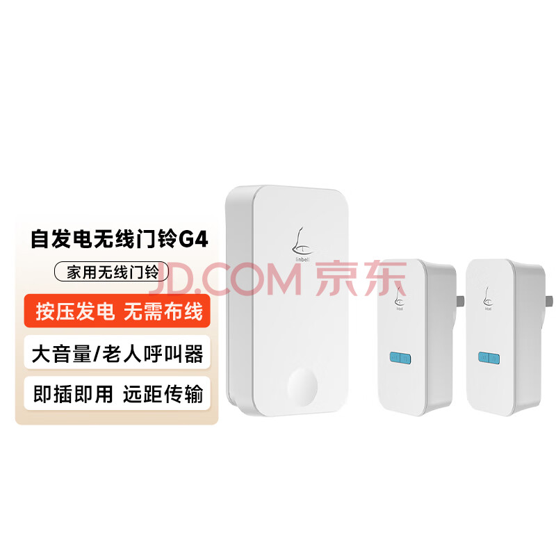 商品相册:领普科技无线门铃G4 家用不用电池自发电免布线 防水老人呼叫器 一拖二第