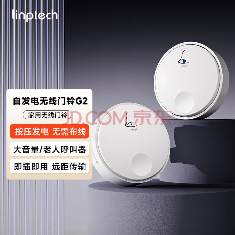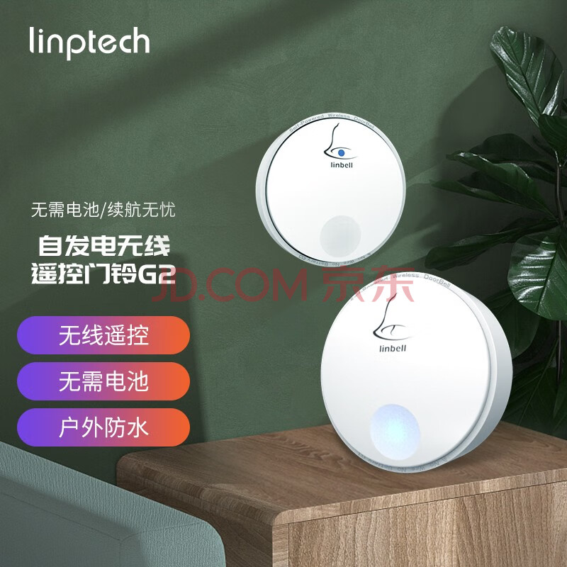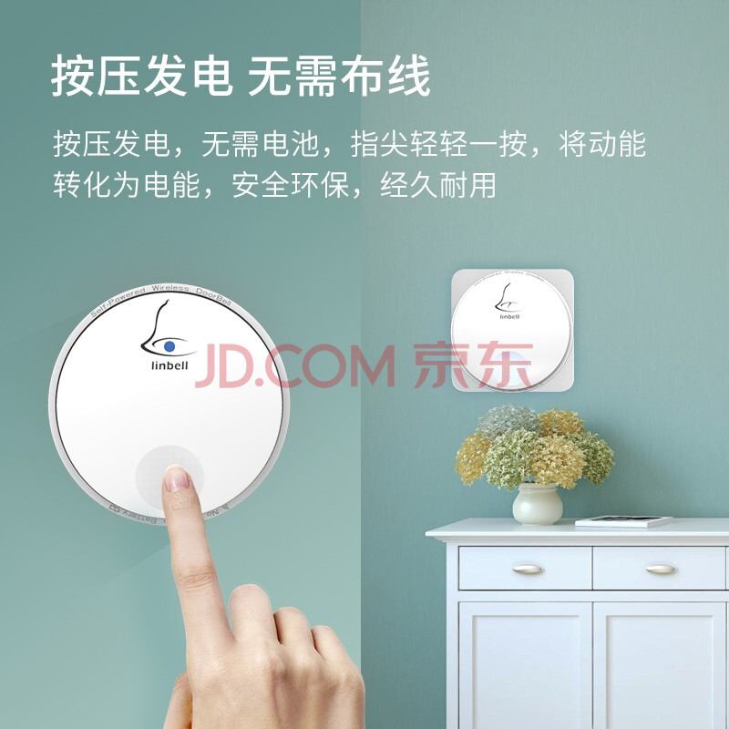 商品相册:领普科技无线门铃G2 远距离家用自发电不用电池老人呼叫器防水 一拖一第