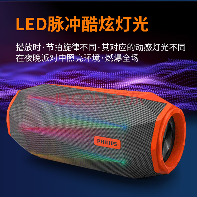 商品相册:飞利浦(PHILIPS)SB500 户外运动HiFi级蓝牙音箱便携式无线低音炮音响电脑桌面舞台炫彩灯光防水菱形切割设计活力橙第