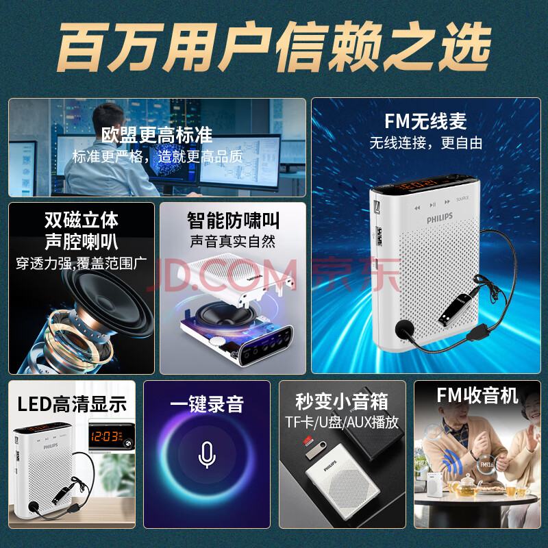 商品相册:飞利浦(PHILIPS)SBM220 小蜜蜂无线扩音器教师专用 收音机麦克风喇叭喊话导游 白色第