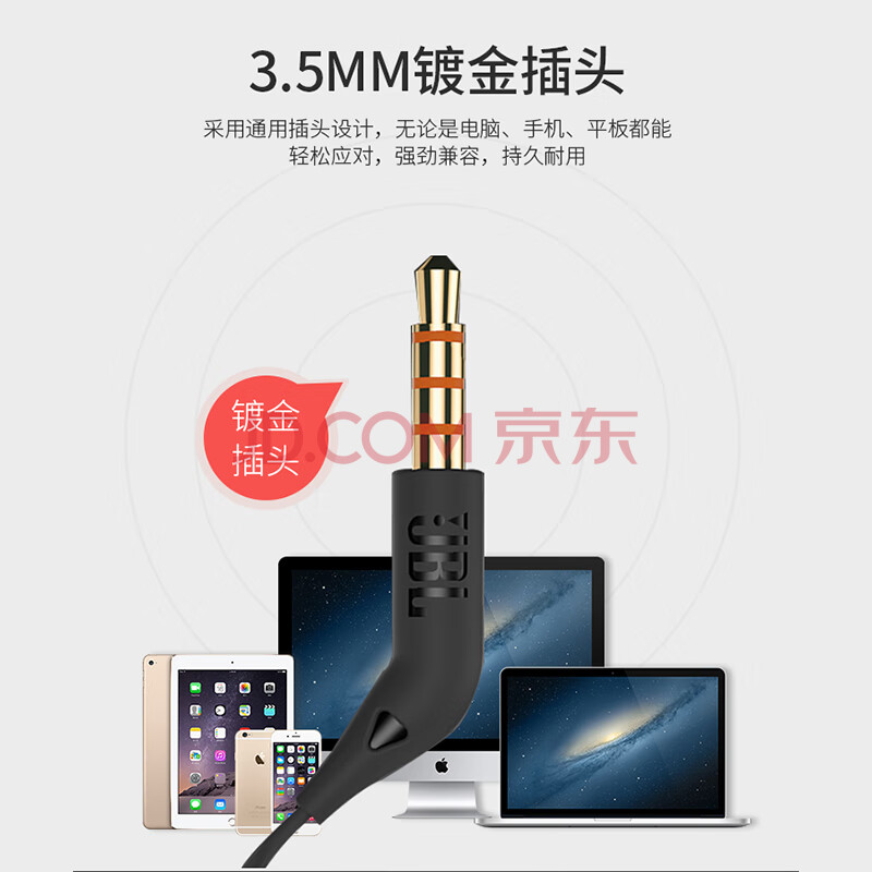 商品相册:JBLT110有线耳机立体声入耳式耳麦 电脑游戏运动耳机 适用于3.5mm接口设备黑色第
