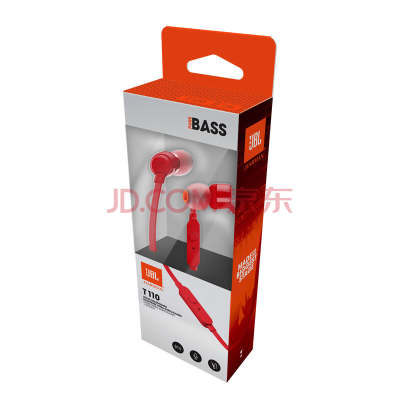 商品相册:JBLT110有线耳机立体声入耳式耳麦 电脑游戏运动耳机 适用于3.5mm接口设备红色第