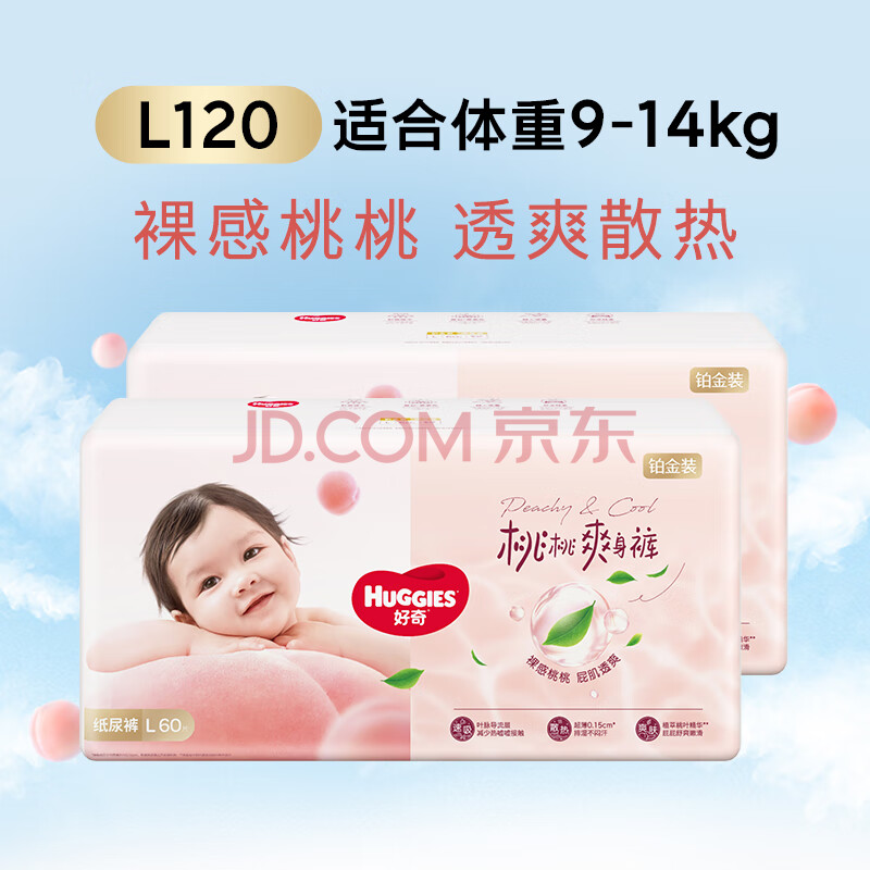 商品相册:好奇(Huggies)铂金装小桃裤纸尿裤L120片(9-14kg)大号尿不湿【透爽散热】第