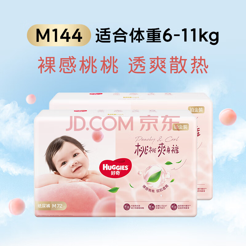 商品相册:好奇(Huggies)好奇铂金装小桃裤纸尿裤M144片(6-11kg)中号尿不湿【透爽散热】第1张/共4