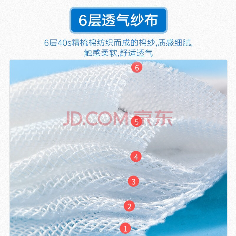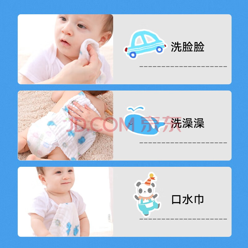 商品相册:南极人口水巾纯棉婴儿高密6层纱布宝宝洗脸方巾儿童手帕手绢毛巾3条装第1张/共8