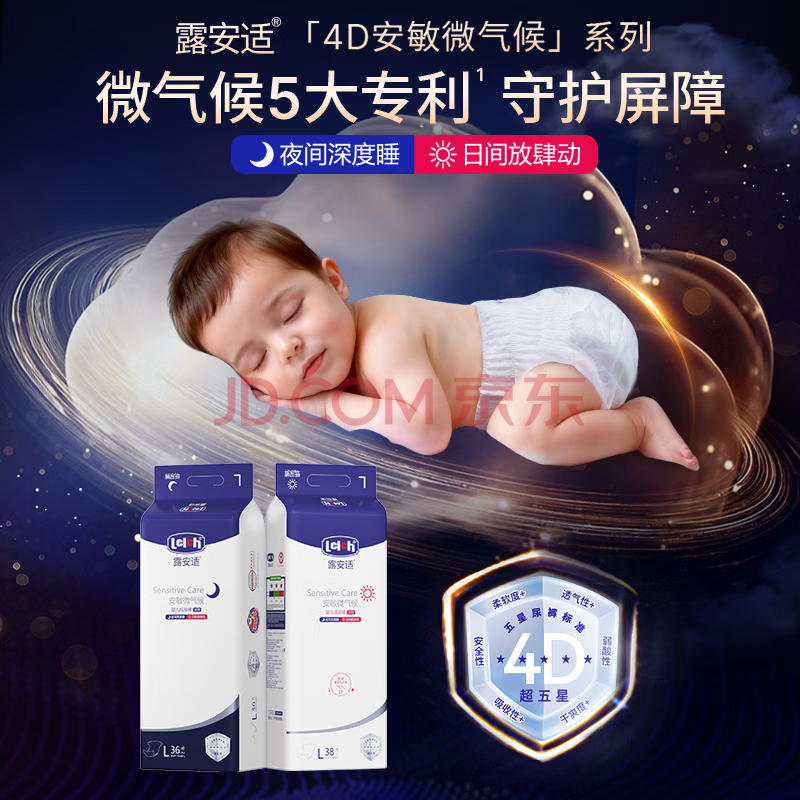 商品相册:露安适(Lelch)安敏微气候系列日用纸尿裤L38片(9-14kg) 大号纸尿裤 尿不湿第1张/共6
