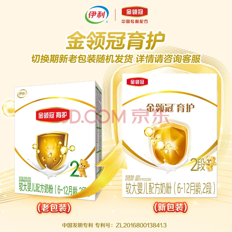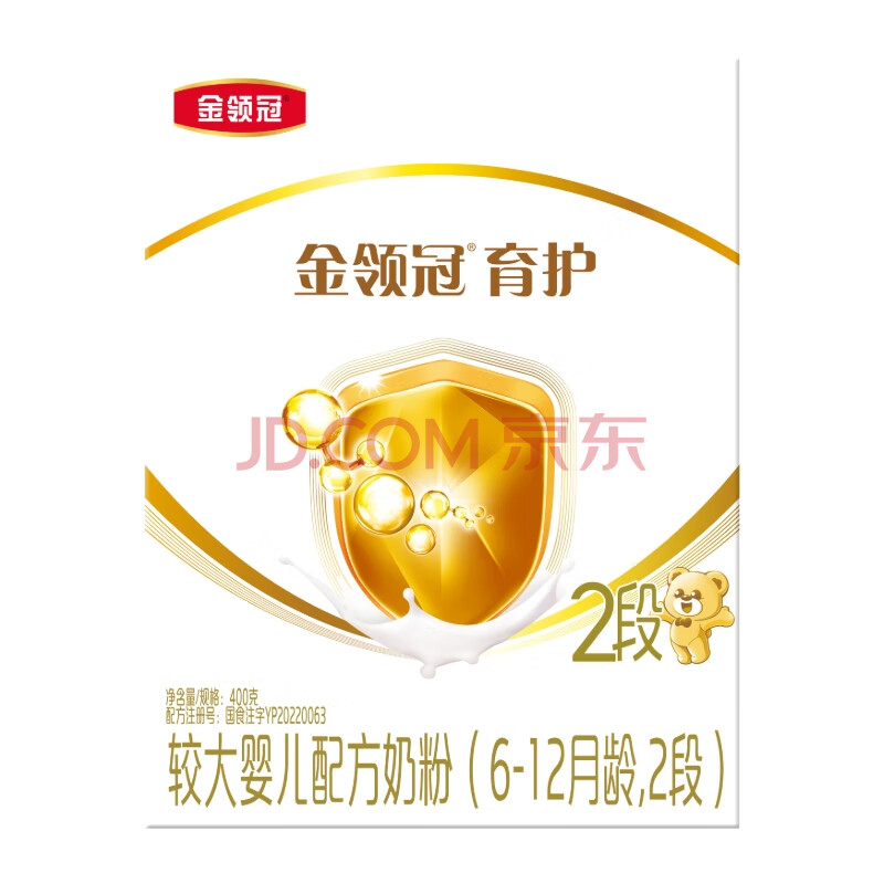 商品相册:伊利金领冠育护较大婴儿配方奶粉2段6-12月400g*1盒【5倍DHA好脑力】第1张/共6