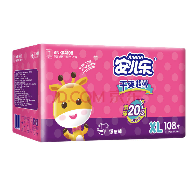 商品相册:安儿乐(Anerle)干爽超薄纸尿裤XL108片(12-17kg)尿不湿【品牌直供 安心品质】第