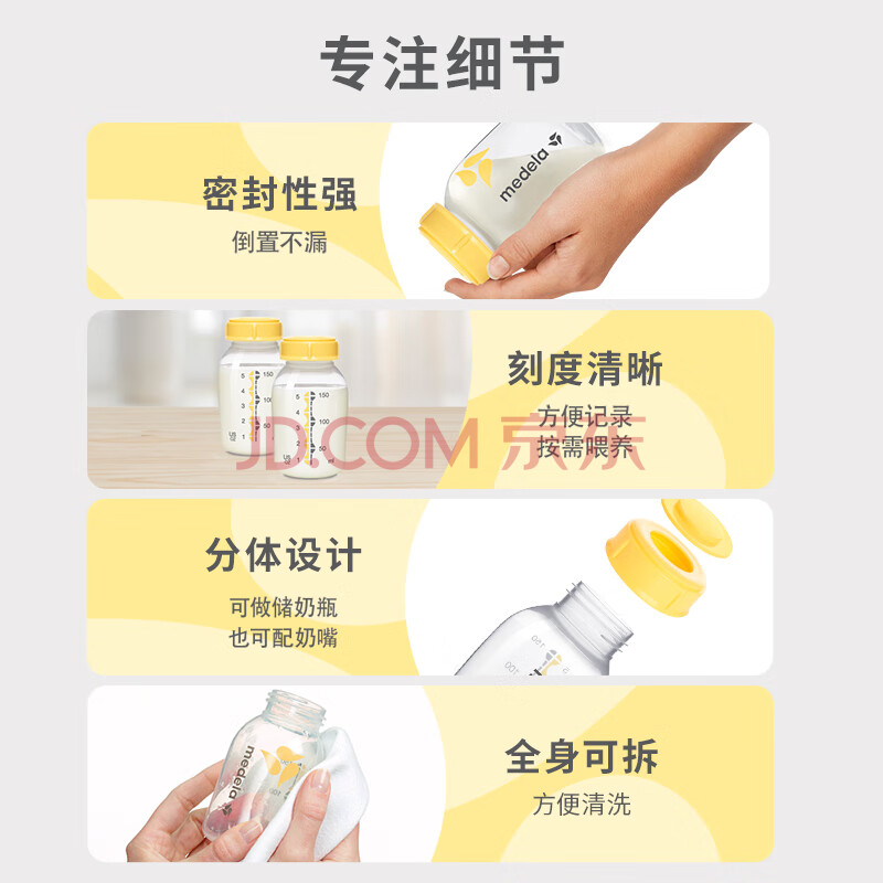 商品相册:美德乐(Medela)奶瓶储奶瓶存奶瓶喂奶食物保鲜婴儿宝宝PP材质150ml(4个装)第1张/共8
