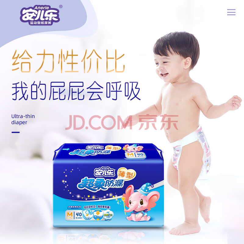 商品相册:安儿乐(Anerle)超柔防漏纸尿片M40片(6-11kg)超薄透气尿不湿第