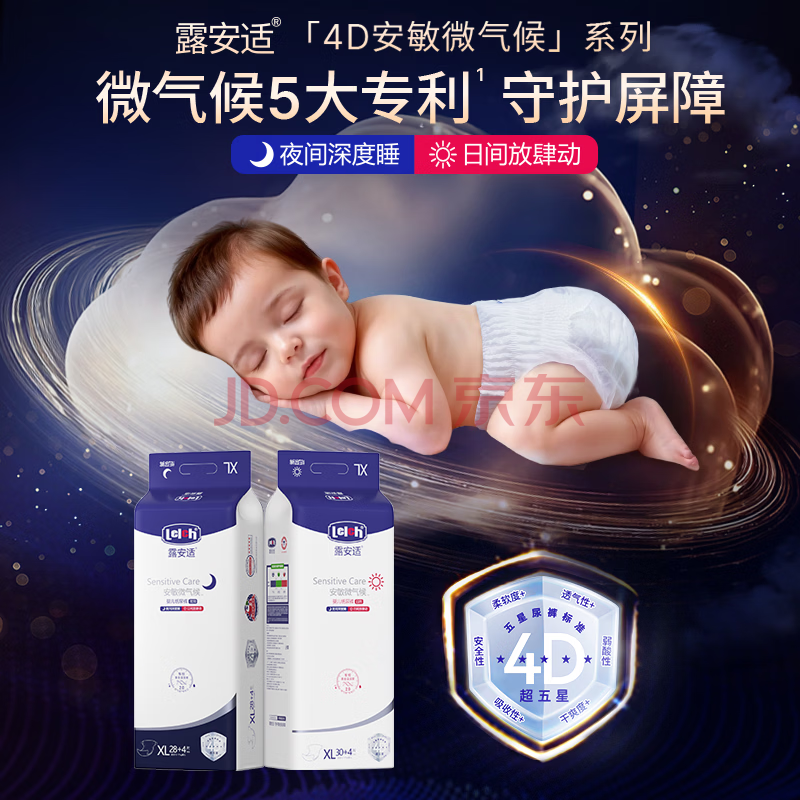 商品相册:露安适(Lelch)安敏微气候系列夜用纸尿裤XL码32片(12-17kg) 婴儿纸尿裤 尿不湿第