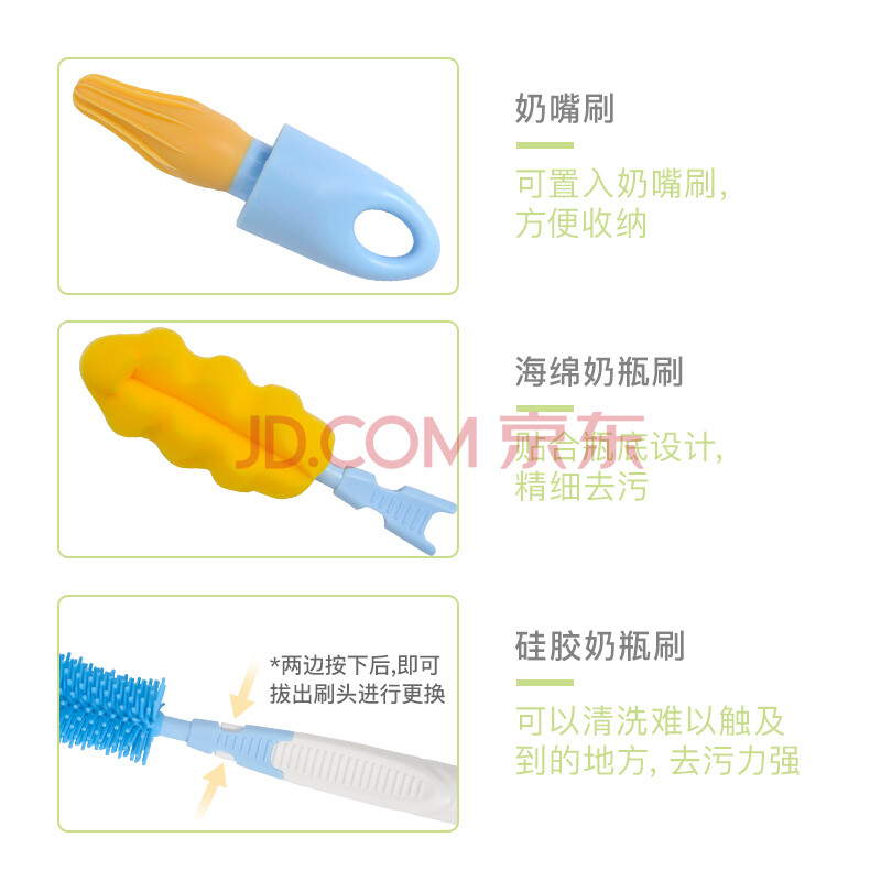 商品相册:贝亲(Pigeon)奶瓶奶嘴刷套装便携多功能硅橡胶奶瓶刷+海绵奶瓶刷+奶嘴刷 EA08第
