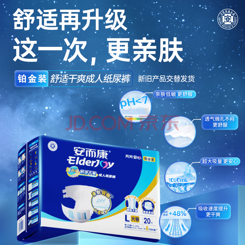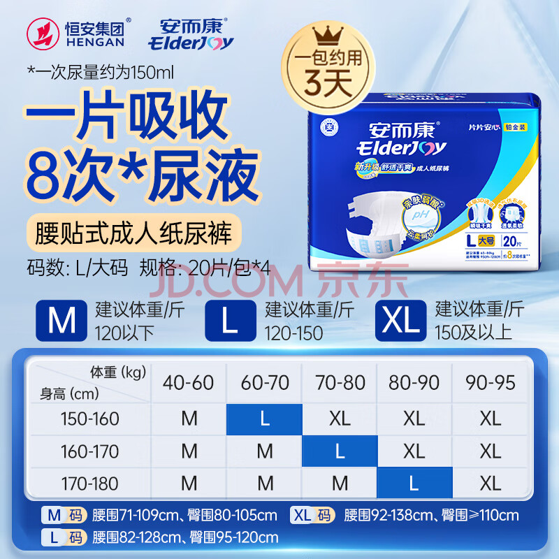 商品相册:安而康(Elderjoy)舒适干爽成人纸尿裤L80片臀围95-120cm成人尿不湿老人亲肤第