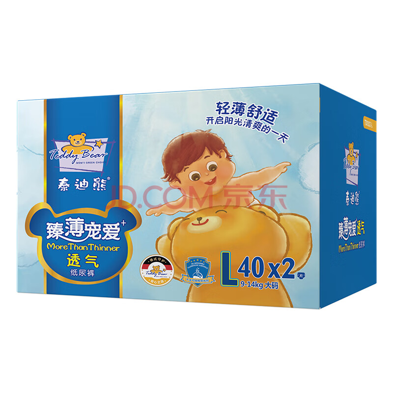 商品相册:泰迪熊(Teddy Bear)臻薄透气纸尿裤L80片(9-14公斤)婴儿尿不湿超薄干爽第